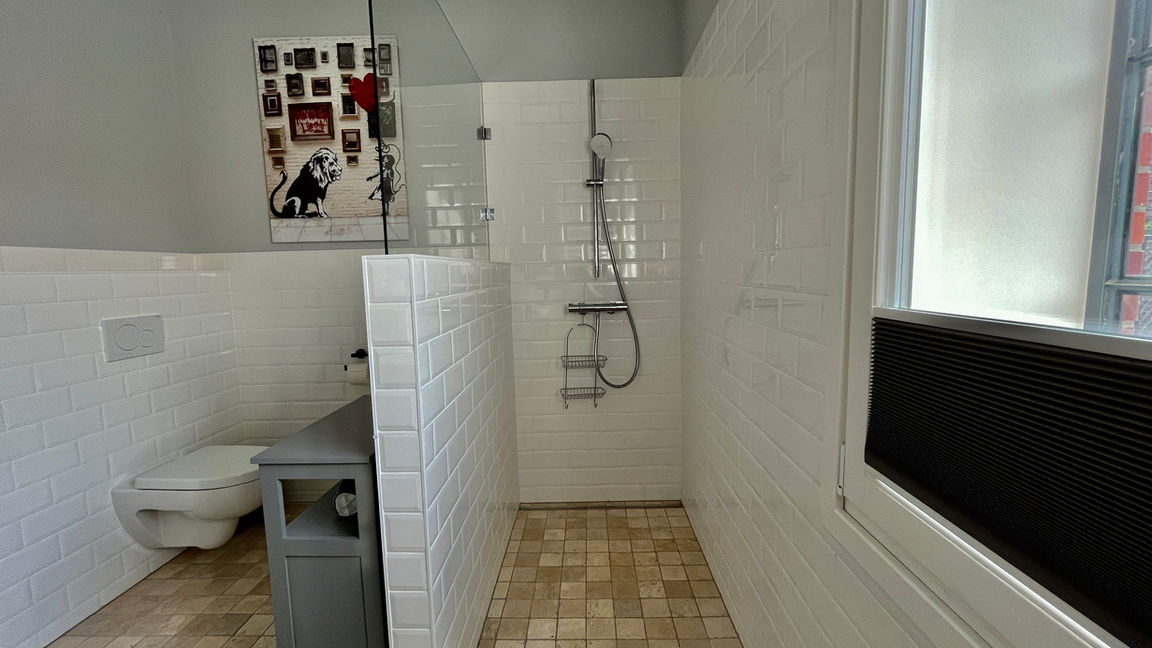 Das Loft 2 ist wie auch das Loft im EG untypisch für Friedrichstadt. In eine alte Werkstadt im Hinterhof wurden zwei charmante, hochwertige Loftwohnungen in 2023 gebaut. Fußbodenheizung und grosszügiger Innenausbau bieten alles, was Loftliebhaber sich wünschen. Ein schönes helles Duschbad und eine Einbauküche mit Spülmaschine, Backofen-Herd, Kühlschrank mit Eisfach und diversen Küchen-Tools runden das Bild ab, um auch hier gemütlich zu kochen.